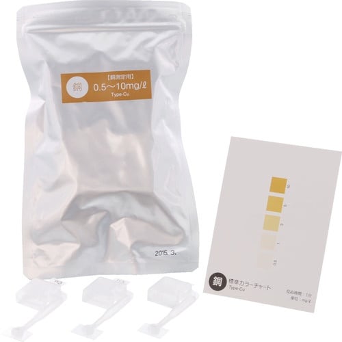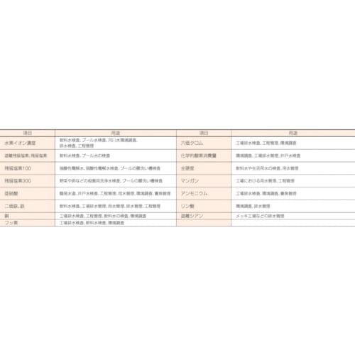 簡単操作のシンプルパックで容易に水質検査ができます。手のひらに入る小型の容器ですので、かさばらず軽量です。試薬の入った容器に検水を吸い込み振った後、10秒ー数分で反応が完了します。 |