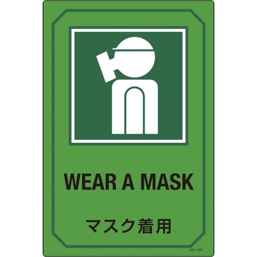 日本緑十字社 緑十字 イラスト標識 マスク着用 GB−208 450×300mm エンビ A00U-3660