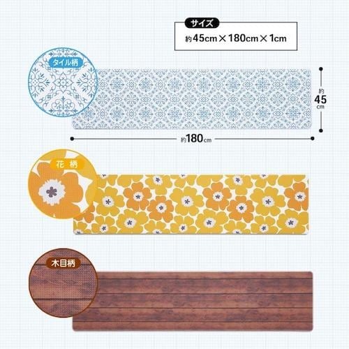 幅×長さ×厚み(mm):450×1800×10 | その他仕様:木目柄の衝撃吸収キッチンマット | 単位:1個