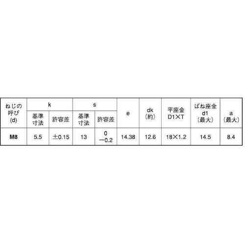 寸法(mm)d:M8 | 寸法(mm)L:18 | 材質・仕上げ:ステンレス(303、304、XM7等) | 単位:1箱(200本)