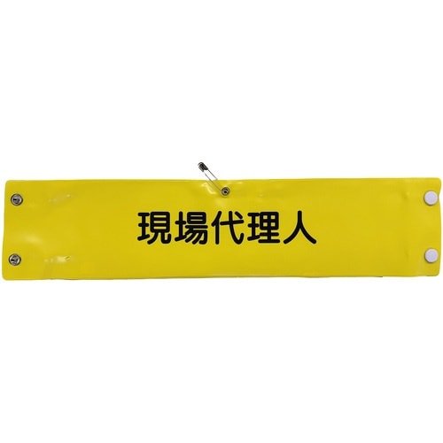 表示内容:現場代理人 | 色:黄 | 縦(mm):90 | 横(mm):400 | 取付方法:ホック、安全ピン | 材質・仕上げ:軟質塩化ビニール製 …