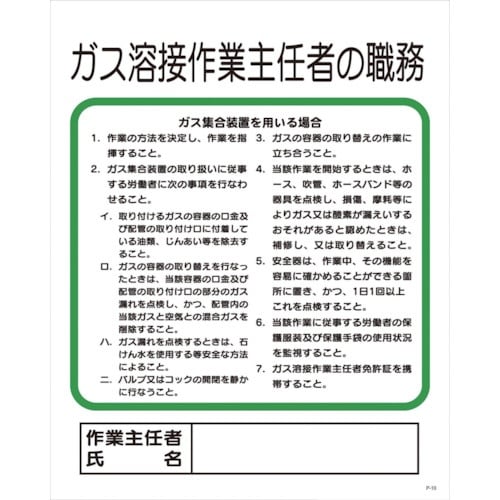 作業主任者の職務に関する標識になります。現場での職務の確認や安全意識の向上に。 |