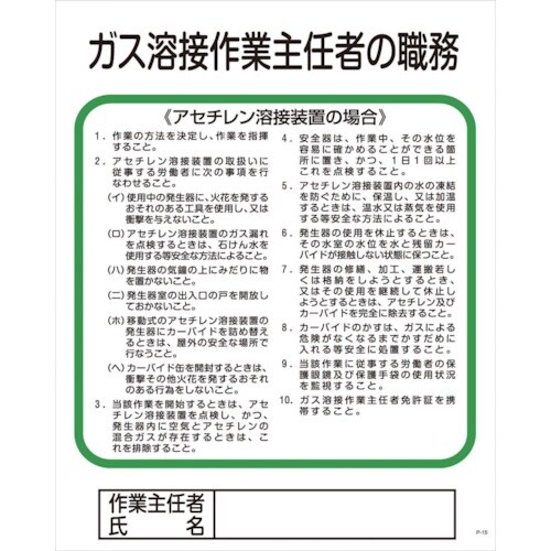 グリーンクロス Pー15 ガス溶接作業主任者の職務