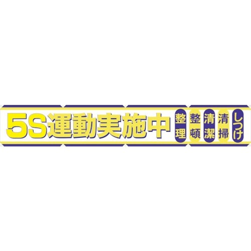 表示内容:5S運動実施中 | 取付仕様:ヒモ | 縦(mm):900 | 横(mm):5400 | その他仕様:ハトメ10ヶ所 | 生地:カツラギ |…