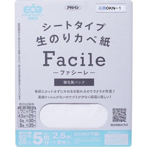 アサヒペン アサヒペン シートタイプ生のりカベ紙Facile 92X2.5MX2枚入(5M分) OKN−1 A00U-6458