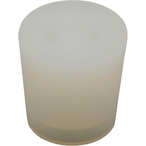 ゴム栓底面の凸部に切り込みを入れるだけで穴を開ける事ができ、穴開け作業が容易です。穴径は直径5mmでガラス管等の使用に便利です。切り込みを入れずに使用すると通常のゴム栓として使用できます。 |