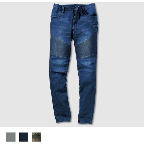 太腿に優れた伸縮性蛇腹を採用。機能性に優れ、二重構造ソフトストレッチでアクティブに動けるデニムパンツ。軽作業に。アウトドアに。普段着に。作業着に。