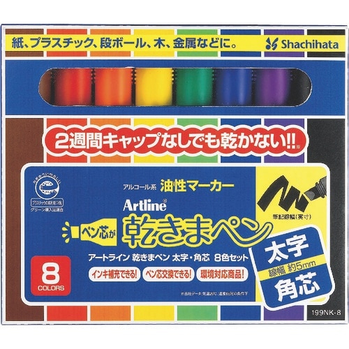 シヤチハタ シヤチハタ 乾きまペン 太字角芯 8色セット 紙 A00V-0018