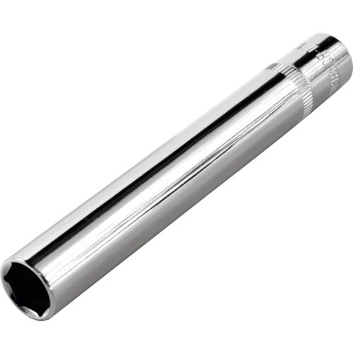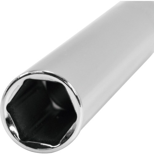 全長が長いタイプのディープソケットです。スパナなどではアクセスできない、長く飛び出たボルトにはまったナットや、奥まった箇所の作業も可能です。ボルトナットを傷めにくい面接触タイプです。 |