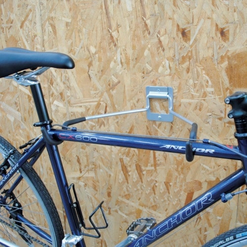 壁や柱などに自転車をディスプレイするためのラックです。自転車のトップチューブを、先端フックに掛けるだけで、簡単にディスプレイすることができます。 |
