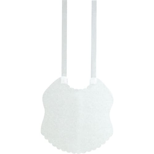 使い捨ての紙エプロンです。結んで固定するタイプです。子供用のエプロンとして。カレー・麺類のお店でのサービス品として。 |