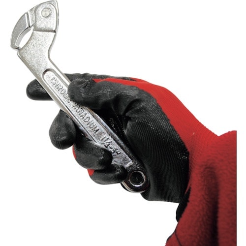 ロックナットの締緩やサスペンションの調整など、溝付きリングナットに対応する、アジャスタブルタイプのフックスパナです。無段階で、開口幅を調節できるので、様々なサイズに使用できます。