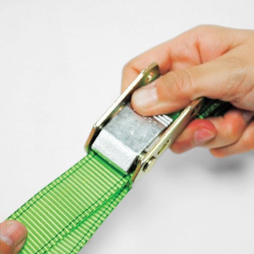 | 注意事項 | ※本製品は荷締めを目的としています。吊り上げ、牽引など本来の用途以外で使用しないでください。ベルトを結んだり、捩れた状態で使用しないでください。ベルトが毛羽立っていたり、縫い目にほつれがある場合は、使用しないでください。ベルトが角など鋭利な部分に接触した状態で使用すると、切れる危険性があります。 |