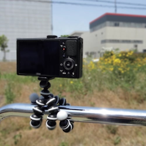 コンパクトサイズの三脚です。ボール状の関節が連なった構造で、向きや角度が自在です。棒に巻き付けたり、吊り下げたりするとこができ、撮影状況に合わせることができます。 |