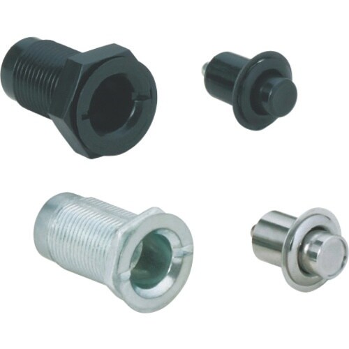 ロックおよびロック解除ともに、プラグの頭を押すだけのワンタッチ操作です。ロック時にプラグの頭が誤解除防止のためフラットになります。解除する場合、先のとがったもので押してください。 |
