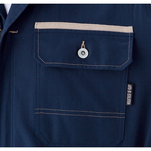 胸ポケット上部には、ベージュカラーのラインテープを採用。ゆったりサイズです。自動車整備などに。作業全般、他。