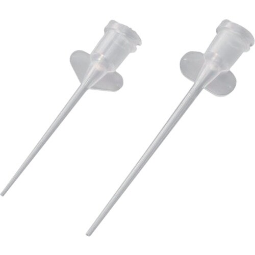 狭い箇所へのディスペンス作業に。シリンジ先端部及び汎用ディスペンサーに勘合し、必要な箇所に適量の薬液等を滴下できます。耐薬品性に優れたPP製です。 |