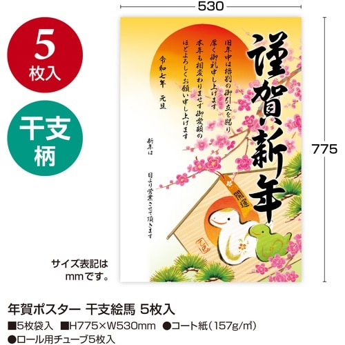 ササガワ 年賀ポスター 干支絵馬 5枚入(2025年 へび)