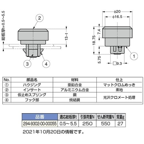 十分な強度でワンタッチ取付を実現。ねじ止め・溶接は不要です。押し込むと「カチッ」という音で締結し、ねじのような締め込み不足がありません。各種産業機器用。 |