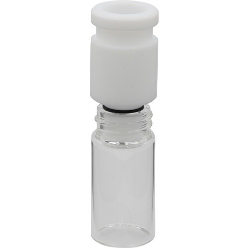 エバポレータ、エバポレータトラップに接続することで、バイアル瓶やスクリュー管で濃縮を行えます。 |