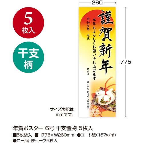 表示内容:謹賀新年 | 縦(mm):775 | 横(mm):260 | タイプ:6号 | その他仕様:2025年(令和七年) | 材質・仕上げ:コート…