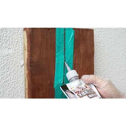 パウチ容器なので、補修箇所に直接手で中身を押し出して使えます。密着力が強く、耐久性に優れた木部用補修材です。耐候性に優れ、雨水の浸入から住まいを守ります。補修後、水性塗料、油性塗料が塗れます。 |