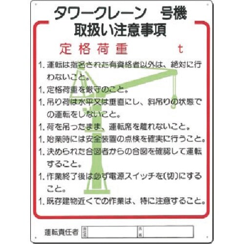 つくし工房 つくし 安全標識 タワークレーン_号機 取扱い注意事項 A00V-5690