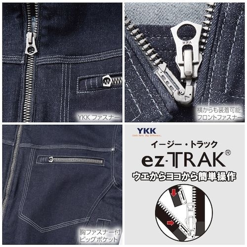 ストレッチ素材で動きやすいカジュアルスタイルです。業界初の横からも装着可能なファスナーでストレスのない着心地を実現します。軽作業に。アウトドアに。作業着に。普段着に。ゴルフに。 |