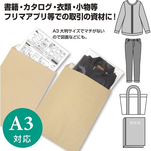 A3サイズ対応の封かんテープ付クラフト封筒です。1包50枚入です。 |