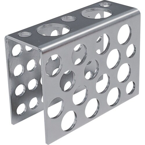 3面に異なる径の穴が空いており、遠沈管やマイクロチューブを立てられるラックです。互い違いに重ねると1つ分のスペースで3つを収納でき、クリーンベンチ内やオートクレーブの際にかさばりません。 |