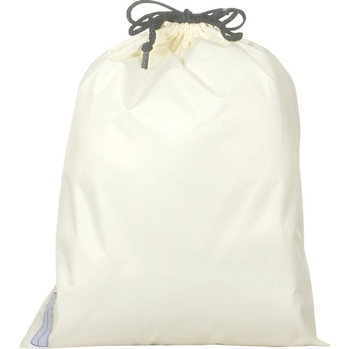 背中部分にマチが付いているので、荷物をたくさん入れた厚みのあるリュックやメッセンジャーバッグのような斜めがけを中に担いでも大丈夫。リュックを背負わないときはスナップボタンでとめておくことができます。 |