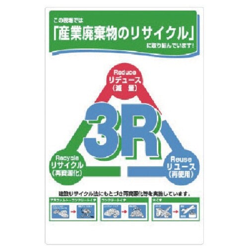 3R運動を推進する為の啓蒙活動標識です。工事現場、工場等での3R運動の表示に。 |