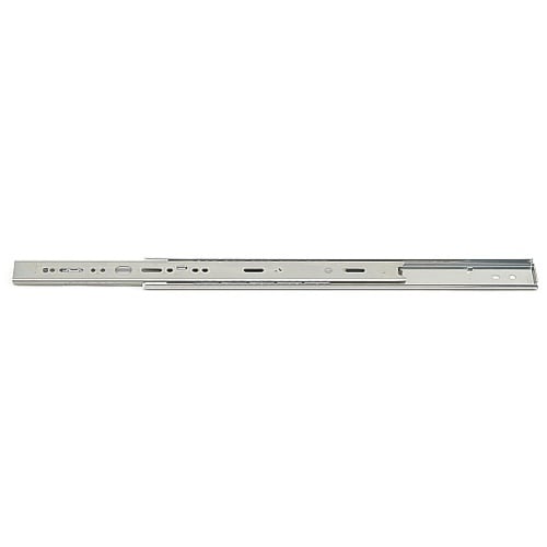 3/4スライドの2段引スライドレールです。レール全開時にその状態で固定します。ロック解除レバーの操作で解除します。ロック解除レバーの操作でインナーメンバーを取り外せます。