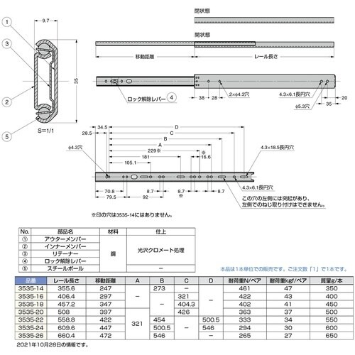 スガツネ工業 SUGATSUNE (190110376)3535−14スライドレール A00V-6758