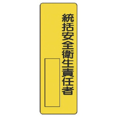 表示内容:統括安全衛生責任者 | 取付仕様:ビス止め、両面テープ止め | 縦(mm):360 | 横(mm):120 | 厚さ(mm):1 | その他…