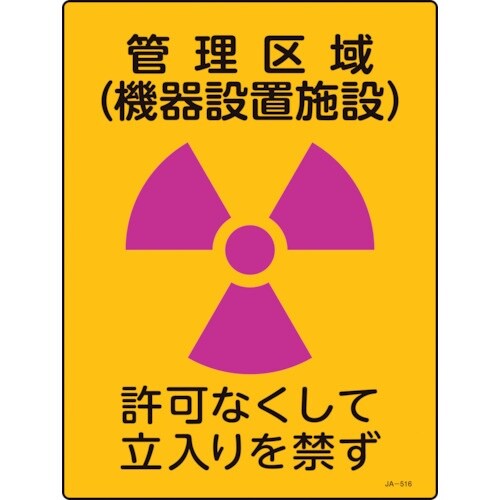 日本緑十字社 緑十字 放射能標識 管理区域(機器設置施設)・立入りを禁ず JA−516 400×300mm A00V-7828