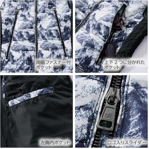 軽量でありながら保温性バッグン・フロントファスナーは、ダブルファスナー仕様でファッションファンクショナリティー。軽作業に。防寒着に。アウトドアに。インドアに。普段着に。 |