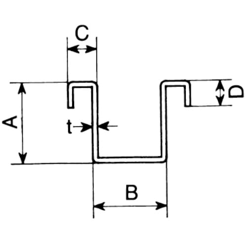 溶融亜鉛メッキ鋼板(塗装なし)のリップ付きの下部ガイドレールです。ガイドローラー用の軌道で、扉のぶれなどを防止に。 |