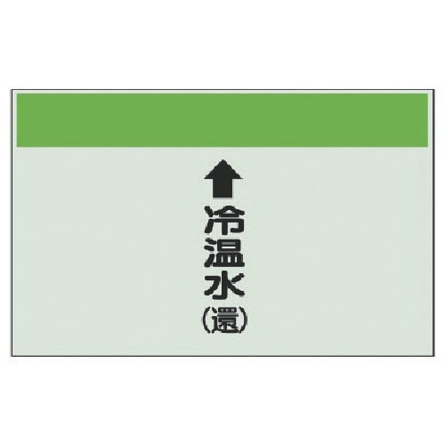 帯色:黄緑(マンセル値10GY 6.5・11) | その他仕様:縦管用 | 内容:上矢印・冷温水(還) | 寸法(mm):250×500×0.25厚 …