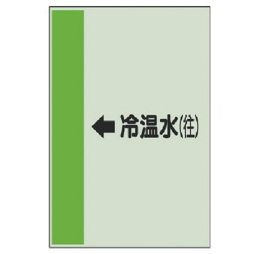 帯色:黄緑(マンセル値10GY 6.5・11) | その他仕様:横管用 | 内容:左矢印・冷温水(往) | 寸法(mm):700×250×0.25厚 …