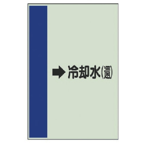 帯色:紺(マンセル値3.75PB 3・11) | その他仕様:横管用 | 内容:右矢印・冷却水(還) | 寸法(mm):700×250×0.25厚 |…