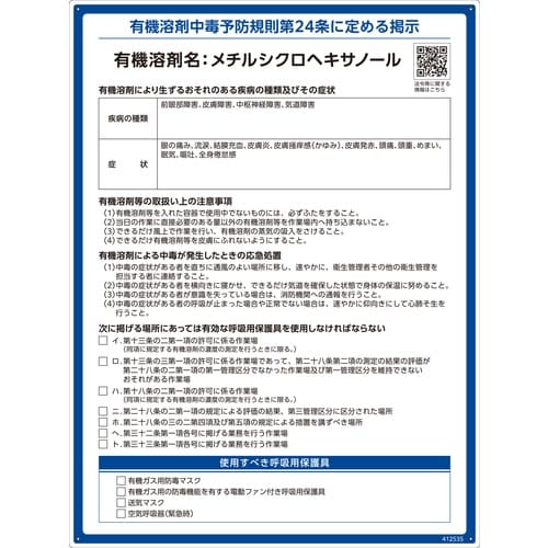 日本緑十字社 緑十字 有機溶剤標識 メチルシクロヘキサノール 600×450mm PP A00V-8809