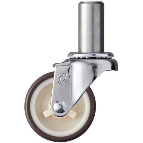 クロームメッキ仕上げで、デザイン性と軽快さを要求される機器に最適な差込みキャスターです。事務機器や家具、屋内運搬車や軽量ラック等、デザイン性と軽快さを要求される環境に。