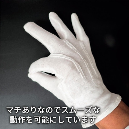 綿100%の生地を使用して作られた「滑り止め付き」作業白手袋です。吸汗性に優れ、毛羽立ちの少ない質感。きめ細かな滑り止めのドットが程よいグリップ感を生み出し使用感を高めています。