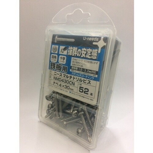 材質・仕上げ:スチール | 材質・仕上げ:ジンロイ+六価クロメート+Kコート(表面処理) | セット付属内容:四角ビット | 単位:1Pk(52本)