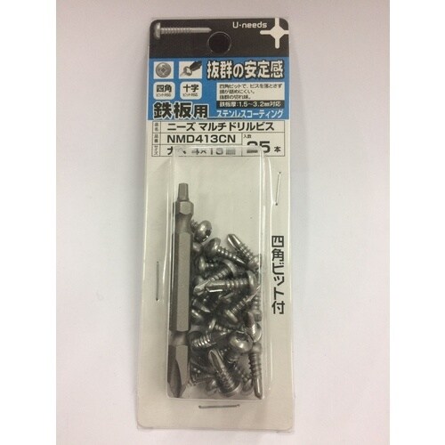 材質・仕上げ:スチール | 材質・仕上げ:ジンロイ+六価クロメート+Kコート(表面処理) | セット付属内容:四角ビット | 単位:1Pk(25本)