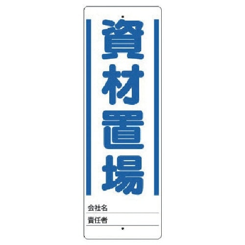 表示内容:資材置場(会社名・責任者) | 縦(mm):450 | 横(mm):150 | 厚さ(mm):2 | 摘要:穴5mmΦ穴上1・下1 | 取付…
