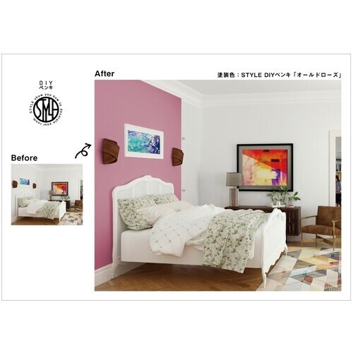 屋内外兼用の水性ペンキです。壁紙の上からそのまま塗れます。乾燥後は、耐水性・耐久性に優れた強い塗膜になります。ほとんど臭いがなく、室内使用での安全基準をクリヤーしています。