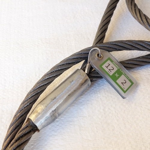 作業員の安全を考慮したJIS玉掛索です。テーパータイプのクランプ管を採用し、加工部にヒゲがなく安全に作業いただけます。ヒヤリハット対策にロープ径と使用荷重を明記した安全タグ付きです。一般玉掛け作業用。