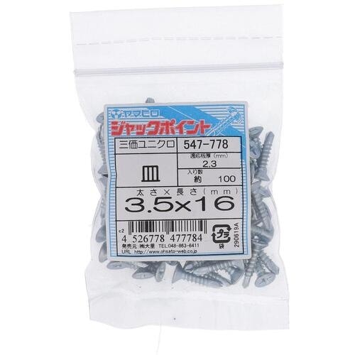 寸法(mm)d:3.5 | 寸法(mm)L:16 | その他仕様:鉄部用ねじ | 材質・仕上げ:鉄・三価メッキ | 単位:1袋(100本)